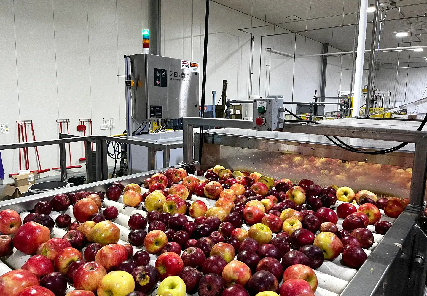 The output can be fed to wash tanks, flumes, belts, brushes, tools, and other intervention points across your facility.